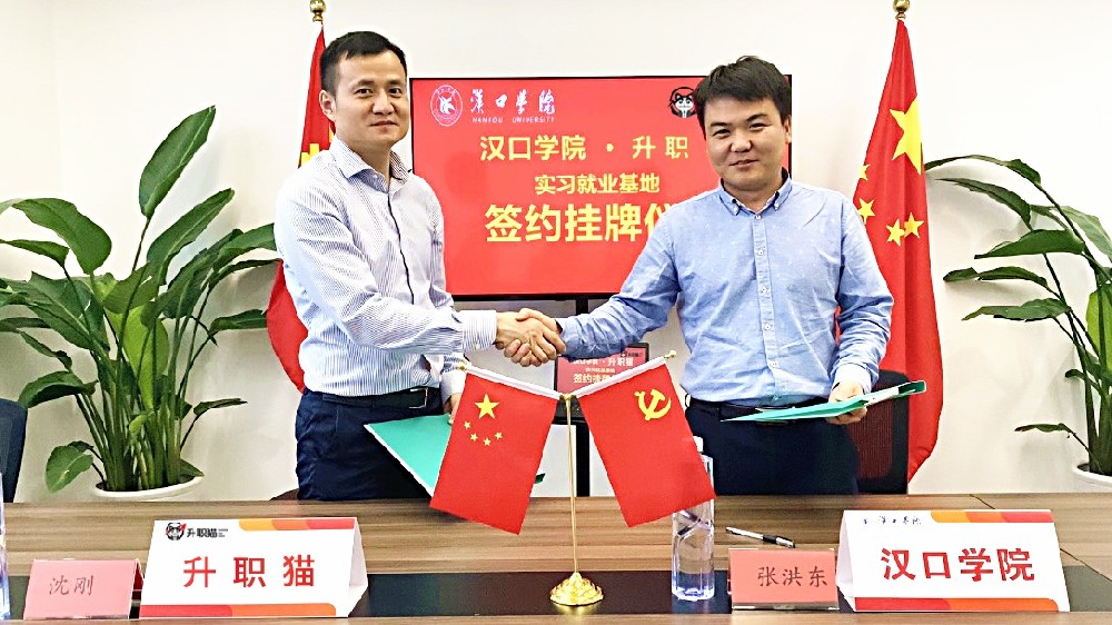2021年5月19日,升职猫与汉口学院合作共建“就业实习基地”,签约挂牌仪式在武汉升职猫公司隆重举行。